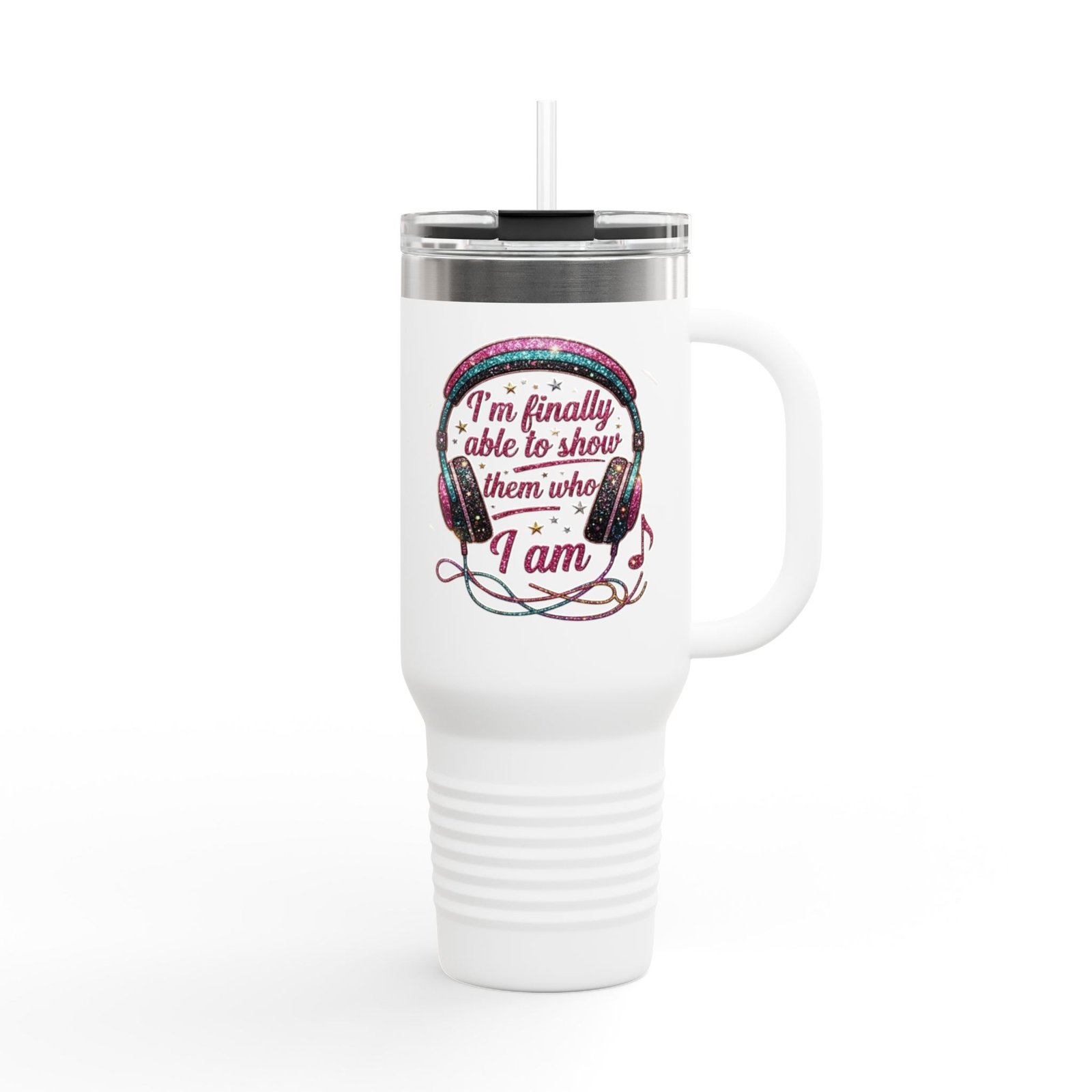 This 40oz insulated travel mug keeps your beverages at the right temperature through long drives, studio sessions, or marathon workdays. The double-wall stainless steel construction locks in heat or chill for hours while a leak-proof push-on lid and included straw let you sip confidently on the move. An ergonomic handle and oversized capacity mean fewer refills and more time doing what you love. The design is applied with UV-DTF printing onto a powder-coated finish for vibrant color and a soft matte feel. Dishwasher use isn’t recommended — hand wash to preserve the print and coating. BPA-free and built to travel, it’s made to live in your daily routine: the coffee that fuels a long road, the iced tea that cools a backyard set, the water you keep at arm’s reach during a long shift.